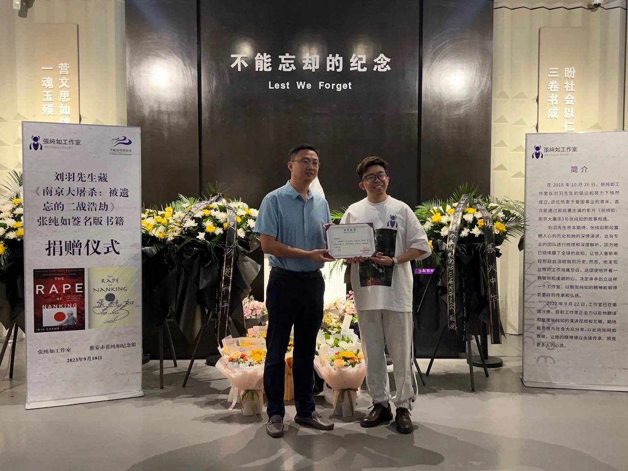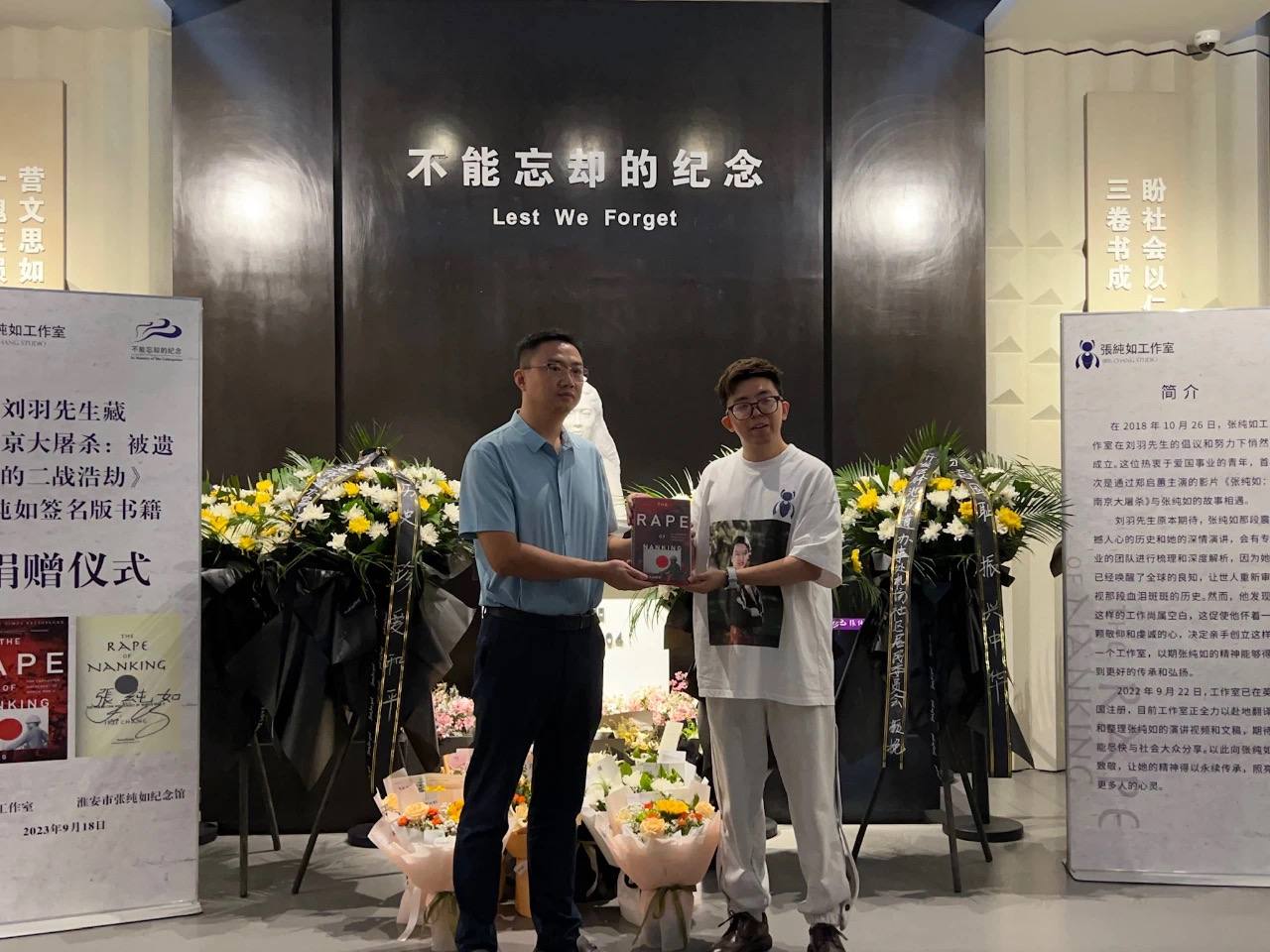 下午2時30分,在淮安市張純如紀念館報告廳舉行了《南京大屠殺:被遺忘的二戰浩劫》張純如簽名版書籍捐贈儀式,現場張純如工作室創始人、捐贈人劉羽,淮安市張純如紀念館全體工作人員以及媒體共同參與了此活動。